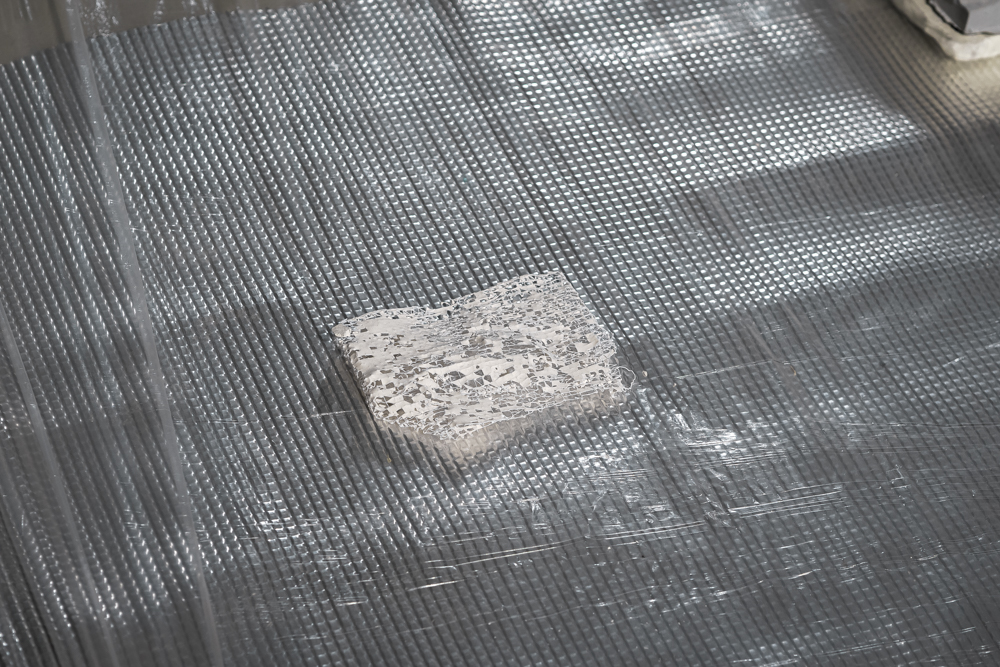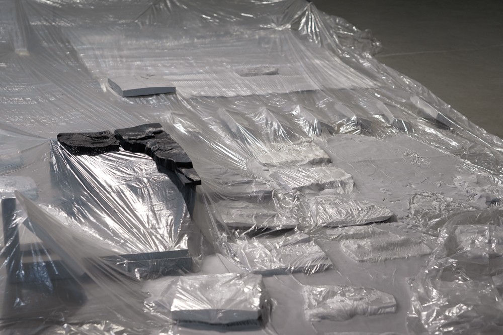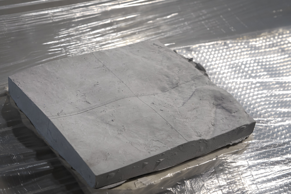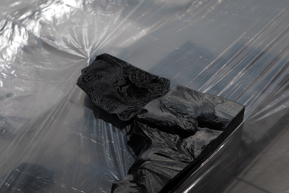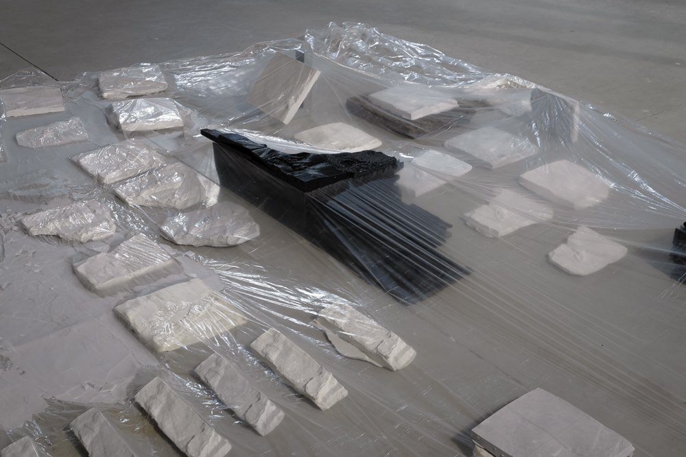 In the process of Raúl and Carlos there is a constant wandering between the liquid and the solid, the provisional and the definitive, the fragment and the totality, the presentation and the representation. Dichotomies and contradictions that serve as coordinates for research based on experimentation with materials and processes -physical and digital-. The spectra of different processes converge, natural and cultural, carving, erosion, scanning, printing, the setting and solidification of the plaster -the passage from liquid to solid-. You can see the hand of the person who carved the original stones to which these copies refer, you can see the wind, the water eroding them, there are the digital processes by which the position and shape of an object is converted into triangles and some meshes on a computer and you can see the marks of the printing process by which the plastic material is ordered to rematerialize what was scanned.