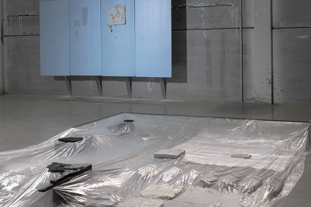 En el proceso de Raul y Carlos existe un constante deambular entre lo líquido y lo sólido, lo provisional y lo definitivo, el fragmento y la totalidad, la presentación y la representación. Dicotomías y contradicciones que sirven de coordenadas para un investigación basada en la experimentación con los materiales y pro- cesos -físicos y digitales-. Confluyen los espectros de distintos procesos, naturales y culturales, la talla, la erosión, el escaneo, la impresión, el fraguado y solidificación de la escayola -el paso de líquido a sólido-. Puede verse la mano de quien talló las piedras originales a las que estas copias hacen referencia, puede verse el viento, el agua erosionando estas, están los procesos digitales por los que mediante el escaneo se convierte la posición y la forma de un objeto en unos triángulos y unas mallas en un ordenador y pueden verse las marcas del proceso de impresión por el que el material plástico se ordena para rematerializar aquello que se escaneó.