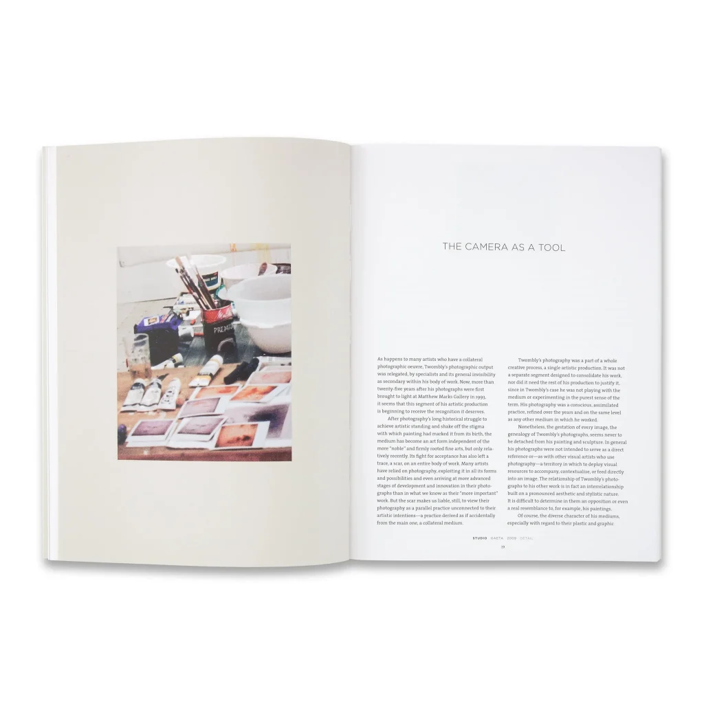 Along with Peris’s illuminating text, the bilingual (English/Spanish) book reproduces in color a selection of Twombly’s transcendent photographs, many of which picture the artist’s studios in Bassano in Teverina, Gaeta, Lexington, New York, and Rome. It also features documentary shots of the artist reviewing his prints in the offices of Schrimer/Mosel, the Munich publisher with whom he worked on several catalogues. Revealing the striking contemporaneity of Twombly’s photographic vision and technical approach, this book constitutes an important addition to the literature on his life and work.